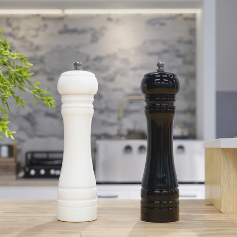 طقم مطحنة فلفل ملح خشبي أبيض 8 "عالي الجودة ، طقم مطحنة دوار سيراميك قابل للتعديل يدوي مصنوع في الصين ، طقم مطاحن توابل أعشاب